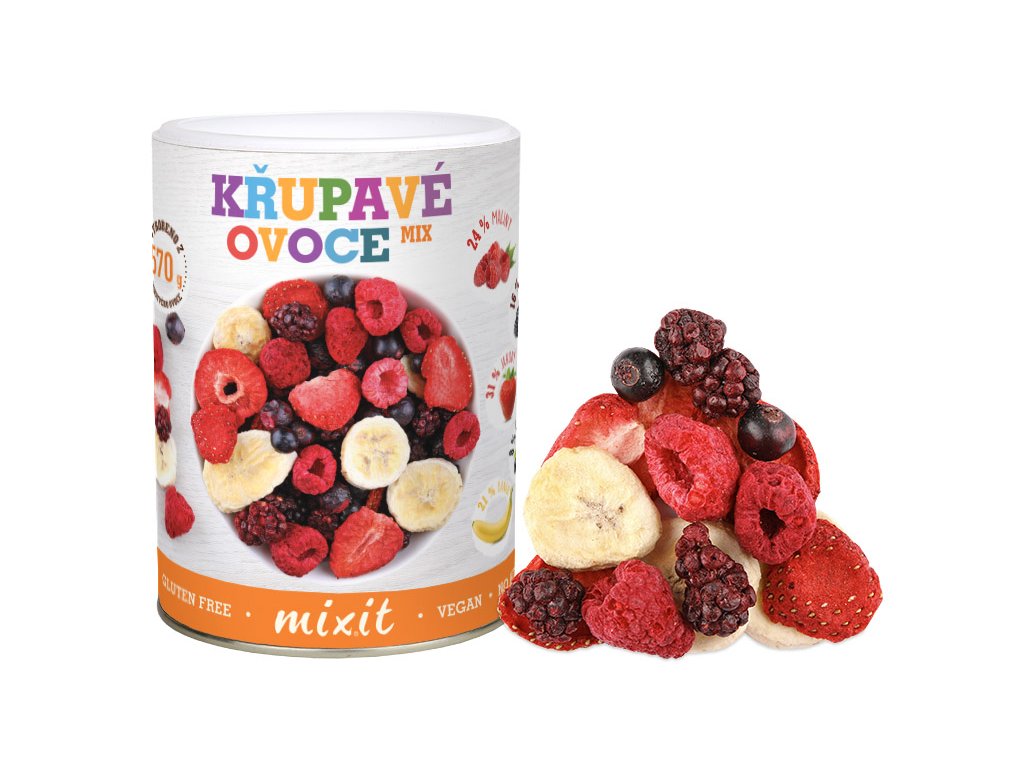 Lyofilizované ovoce (jahody 31 %, maliny 24 %, banán 21 %, ostružiny 16 %, černý rybíz 8 %)
